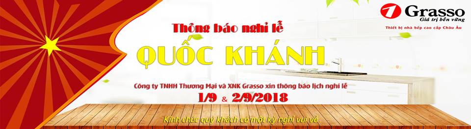 Công ty TNHH Thương Mại & Xuất Nhập Khẩu Grasso xin thông báo lịch nghỉ lễ Quốc khánh 02/09 năm 2018 của Công ty như sau: