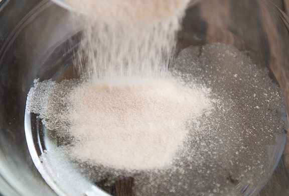 Bước 1: Trộn 20g bột Gelatin với 20nl nước theo tỉ lệ trên, đảo đều để bột có thể ngấm hết nước và để bột nghỉ trong khoảng 10 phút.