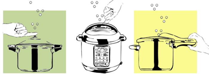Đây là cách giảm áp bằng cách cắt nhiệt cho nồi áp suất, để nồi tự nguội bớt để giảm áp suất một cách tự nhiên. Sau 10- 15 phút, người dùng sẽ xả áp suất còn sót lại trong nồi bằng phương pháp xả khí áp chậm như trên.