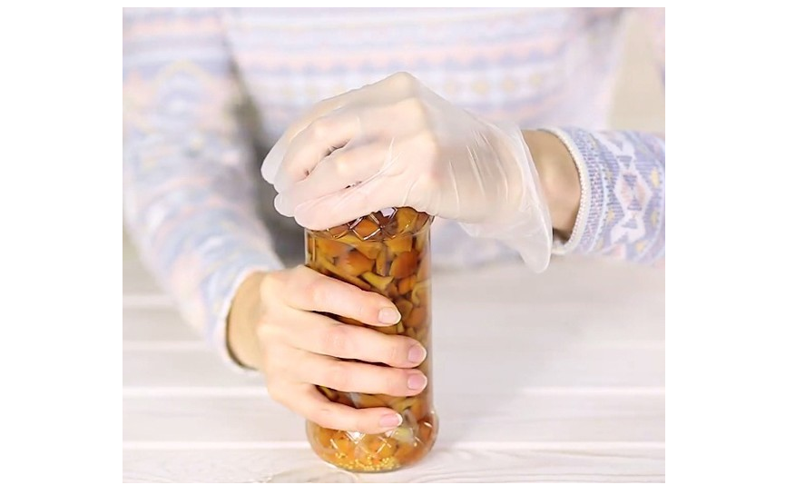 Cả hai vật dụng này đều rất dễ tìm được trong căn bếp nhà bạn, việc cần làm là bạn quấn dây chun cao su xung quanh nắp lọ, rồi đi găng tay vào nữa nhé! Tận dụng lực ma sát giữa găng tay và dây chun cao su, bạn có thể dễ dàng xoay nắp kim loại và mở lọ thực phẩm.