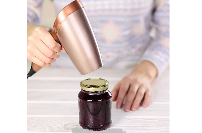 Dùng máy sấy hơ lên nắp lọ chừng 2 phút. Sau đó thì mở nắp nào! Do nắp kim loại truyền nhiệt nên bạn nhớ lấy khăn/giấy lót để tránh bị bỏng nhé! Lý do là việc giãn nở của kim loại có thể khiến nắp đỡ chặt hơn và bạn sẽ dễ dàng có thể mở nắp ra hơn.